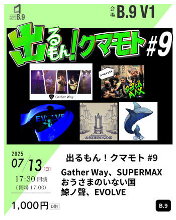 【出るもん!クマモト #9】 出演:Gather Way / SUPERMAX / おうさまのいない国 / 鯨ノ聲 / EVOLVE イベント特設サイト(チケット予約)